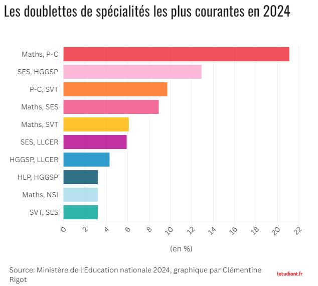 Pour information voici le top 10 des combinaisons (doublettes) les plus choisies en Terminale en 2024. (Source : L'Etudiant)