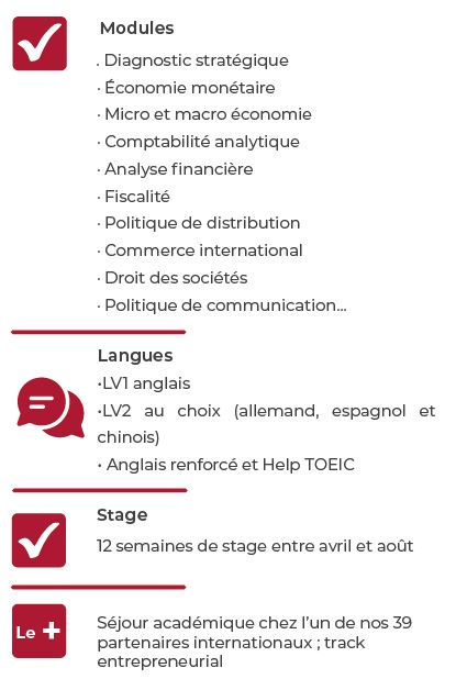 Cette seconde année du Bachelor de l'ESC Amiens est ouverte à tous les étudiants titulaires d'un bac+1 (1ère année de BTS, de Licence, de DUT, d'école de commerce ou de classe préparatoire.