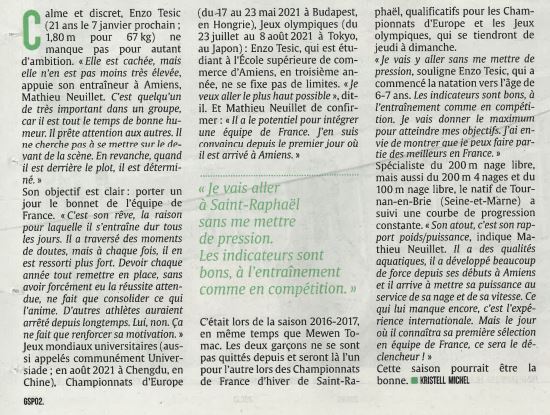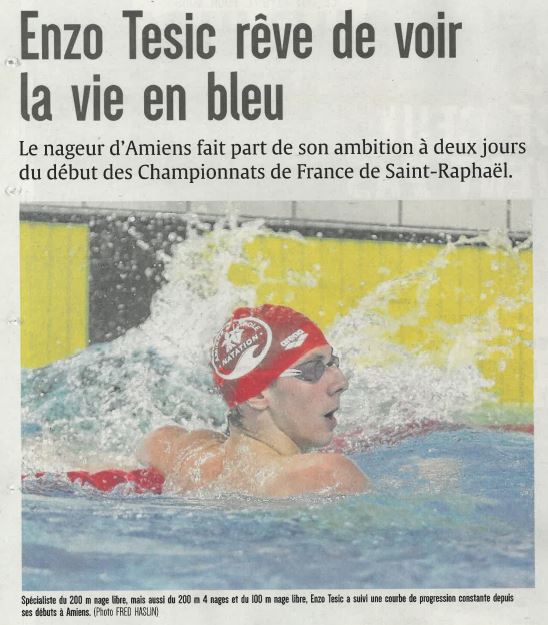 Découvrez l'interview d'Enzo TESIC, étudiant en Bachelor 3 à l'ESC Amiens et sportif de haut niveau, à deux jours du début des Championnats de France de natation qui se tiennent à Saint-Raphaël. SOURCE : COURRIER PICARD