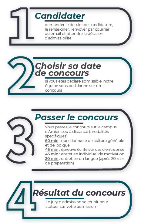 Le processus d’admission du Programme Management de Gestion Opérationnelle d'Entreprise de l’ESC Amiens se décompose en 3 étapes :